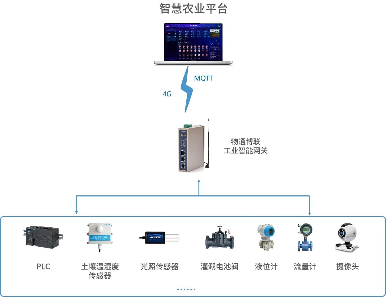 物联网网关实现对气象、虫灾、墒情等多源数据采集,并通过4G网络对接到数字化管理平台中。