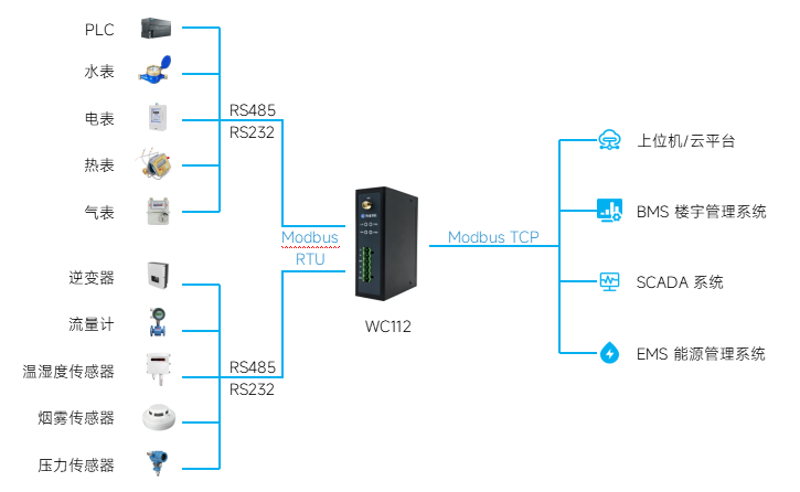 物通博联Modbus协议转换器,专注实现串口协议与网络协议无缝转换,快速打通 Modbus 等工业设备数据链路,即插即用、稳定可靠,广泛适配智能工厂、能源管理、智能楼宇、远程抄表等场景,助力传统工业设备低成本数字化升级。